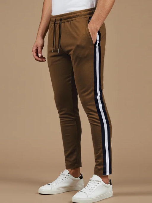 Louis Vicaci Slim Fit Active Wear Summer Trouser For Men-Brown with Navy & White Stripes-SP2511