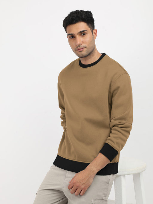 Upgrade Fashion Terry Fleece Funky Style Sweatshirt For Men-Camel with Black-BE2530