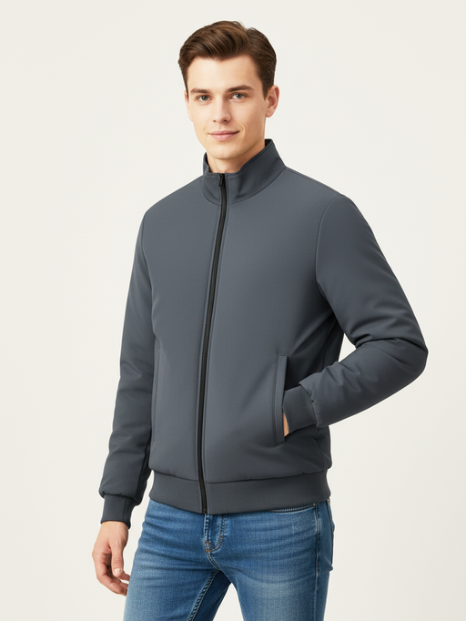 Stylish Winter Zipper Mockneck Jacket For Men-Grey-BRPH13
