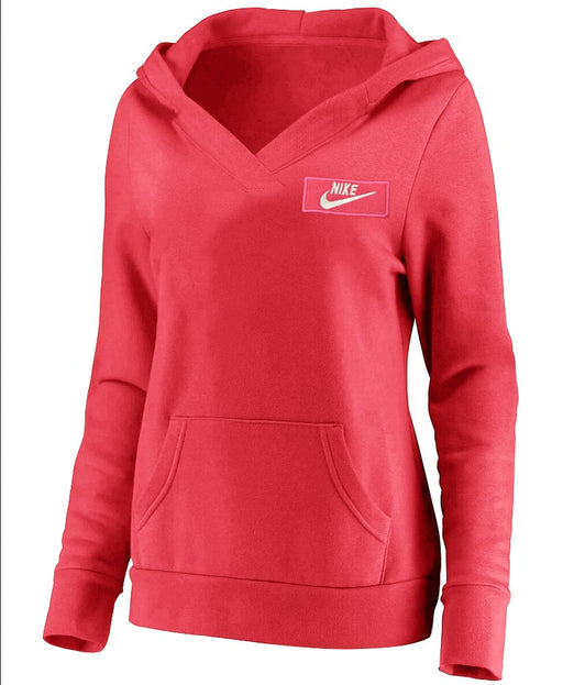 NK Terry Fleece V Neck Hoodie For Ladies-Dark Pink-RT697