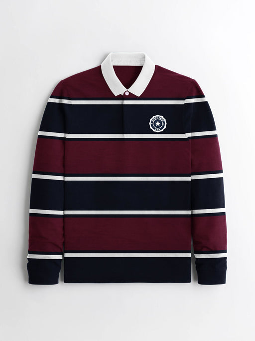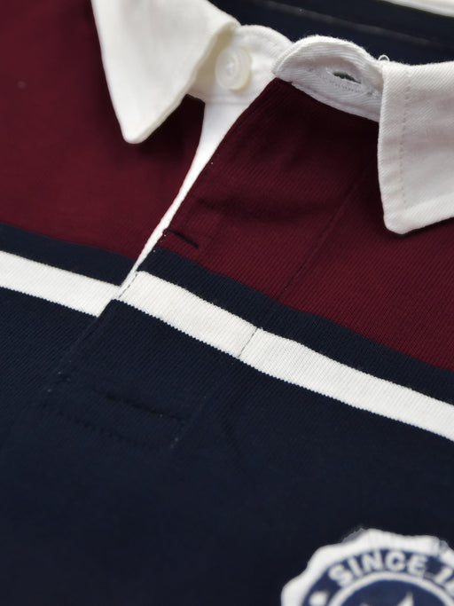 Next Long Sleeve Rugby Polo Shirt For Men-Navy & White & Maroon Striper-NA14034
