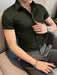 Louis Vicaci Super Stretchy Slim Fit Half Sleeve Summer Formal Casual Shirt For Men-Olie Green-RT1994