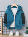 NYC POLO Fleece Pullover Hoodie For Kids-Cyan with Charcoal Panel-BE2060