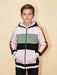 NXT Inner Fur Hood Fleece Full Zipper Hoodie For Kids-Light Pink with Blak Panel & Multi Stripes-BE2415/BR14479
