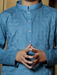 Stitched Kurta For Kids-Light Blue Allover Textured-VL0040