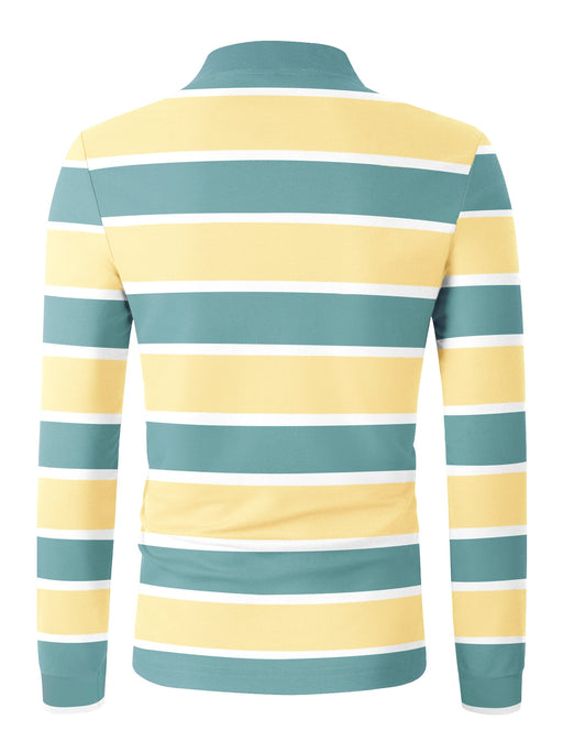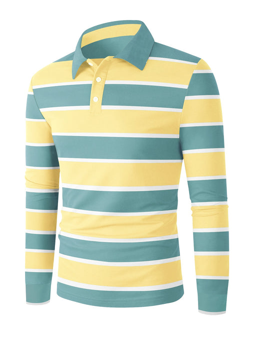 Louis Vicaci Long Sleeve Polo Shirt For Men-Light Yellow & Cyan Green Stripe-BR896