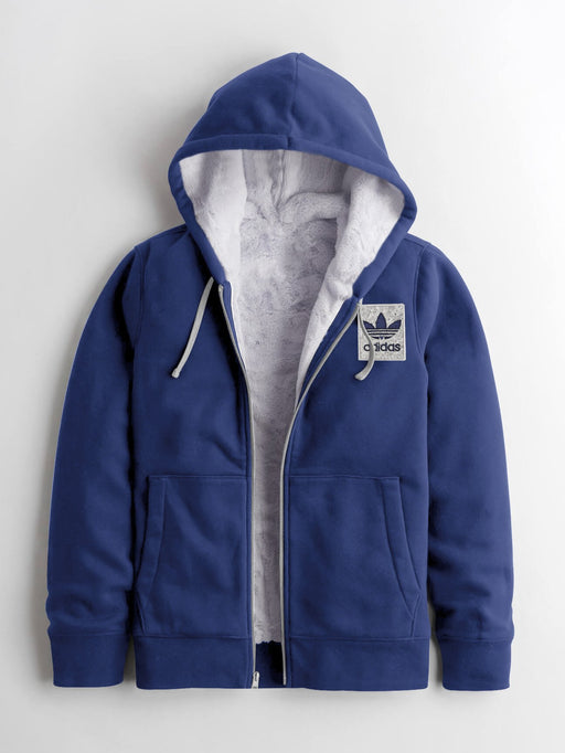 Adidas Faux Fur Zipper Hoodie For Men-Blue-BE16014