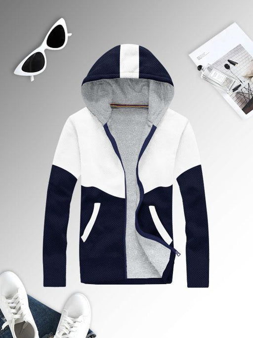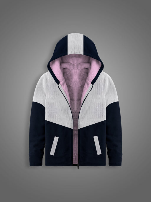 Mango Stylish Inner Quilted Fur Zipper Hoodie For Kids-White & Navy-BR956