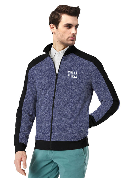 P&B Zipper Mock Neck Jacket For Men-Blue Melange & Black-BE16502