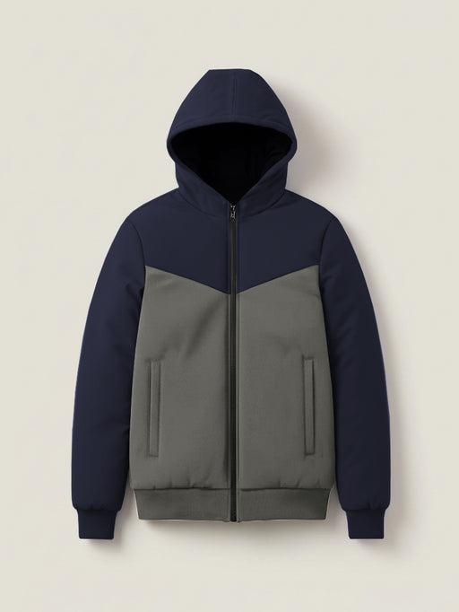 Stylish Winter Zipper Jacket For Men-Dark Navy With Grey-PH06