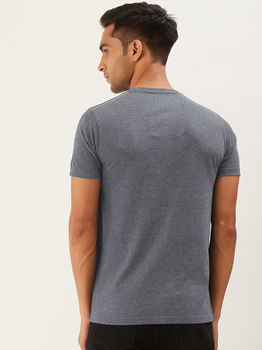 Celebrate Single Jersey Crew Neck Tee Shirt For Men-Charcoal Melange & Navy Panel-BR13212