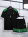 Louis Vicaci Summer Active Wear T Shirt & Lounge Short For Men-Black with Green Panels-BE3221/BR15669