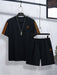 Louis Vicaci Summer Active Wear T Shirt & Lounge Short For Men-Navy with Orange & White Stripes-BE3218/BR15664