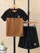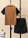 Ads Summer T Shirt & Short Suit For Kids-Black with Dark Camel-BE3283/BR15721