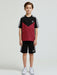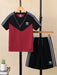 Ads Summer T Shirt & Short Suit For Kids-Black with Maroon & White, Navy Stripe-BE3279/BR15717