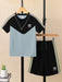 Ads Summer T Shirt & Short Suit For Kids-Bond Blue with Black & Brown, Skin Stripe-BE3303/BR15741