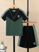 Ads Summer T Shirt & Short Suit For Kids-Forest Green with Black & White, Green Stripe-BE3291/BR15729