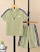 Ads Summer T Shirt & Short Suit For Kids-Light Grapes & White, Navy Stripe-BE3282/BR15720