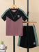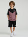 Ads Summer T Shirt & Short Suit For Kids-Tea Pink with Black & White, Green Stripe-BE3293/BR15731