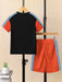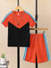Summer T Shirt & Short Suit For Kids-Orange & Black Lining with Sky,Navy Stripe-BE3311/BR15749