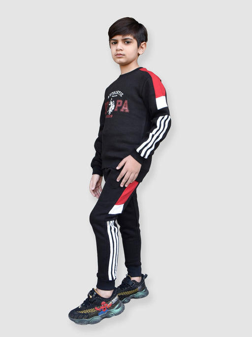 U.S Polo Assn Fleece Tracksuit For Kids-Black With Red-BR909