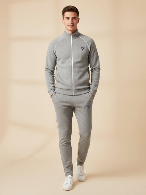 Louis Vicaci Fleece Zipper Tracksuit For Men-Grey Melange-LVTS03