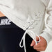 NK Terry Fleece Raglan Sleeve Crop Lace Up Sweatshirt For Women-Off White Melange-BE13978