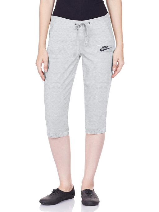 Fleece Capri For Ladies-Grey Melange With Navy Embroidery-BR230