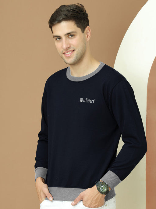 OTFR Fleece Funky Style Sweatshirt For Men-Dark Navy with Grey-BE2487