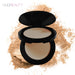- A lightweight,oil-free powder foundation that goes on dry or wet for custom coverage and matte natural finish.