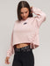 NK Terry Fleece Raglan Sleeve Crop Lace Up Sweatshirt For Women-Light Pink-BR133