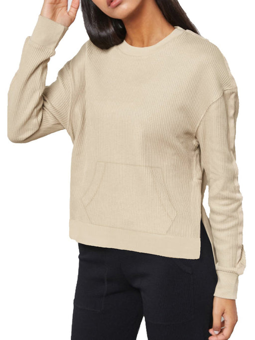 NK Terry Fleece Raglan Sleeve Crop Lace Up Sweatshirt For Women-Light Pink-BR133