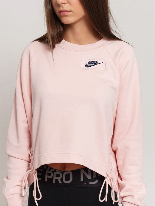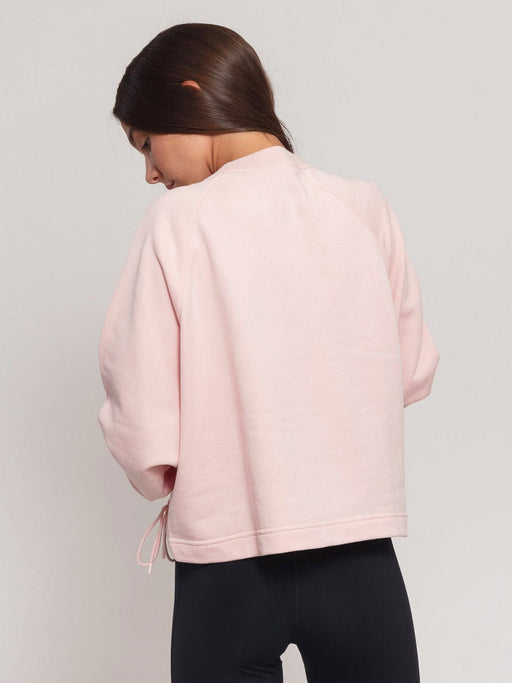 NK Terry Fleece Raglan Sleeve Crop Lace Up Sweatshirt For Women-Light Pink-BR133